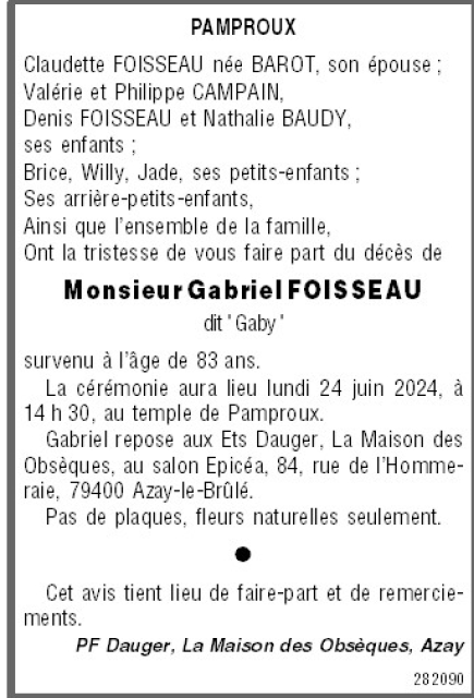 Epoux de Madame Claudette FOISSEAU
