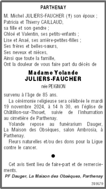 Madame Yolande JULIERS-FAUCHER née PEIGNON
