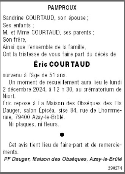 Décédé à Niort (79000, France) le lundi 25 novembre 2024 à l'âge de 51 ans