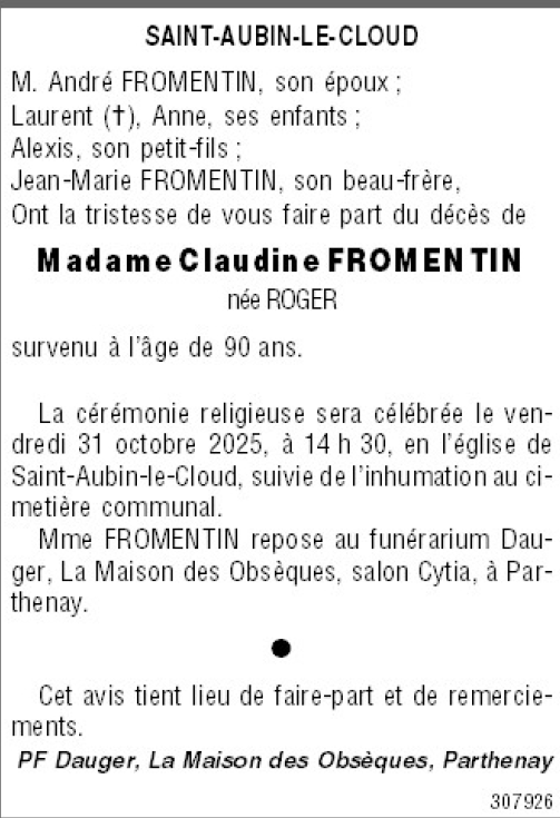Née à Saint-Aubin-le-Cloud (79450, France) le jeudi 26 septembre 1935