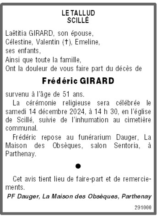 Décédé à Le Tallud (79200, France) le lundi 9 décembre 2024 à l'âge de 51 ans