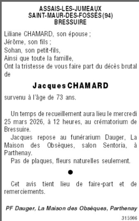 Décédé à Saint-Maur-des-Fossés (94100, France) le mardi 17 mars 2026 à l'âge de 73 ans