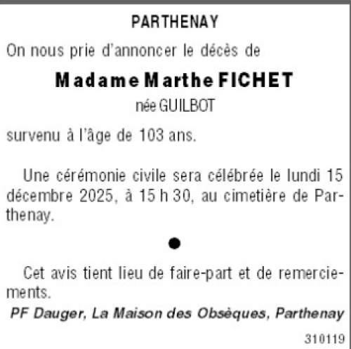 le dimanche 7 décembre 2025 à l'âge de 103 ans