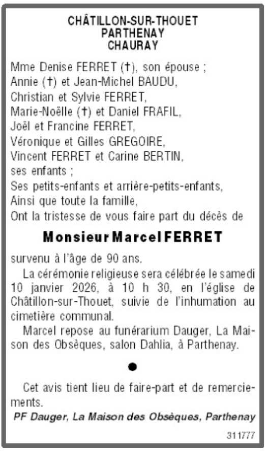 Décédé à Chauray (79180, France) le mardi 6 janvier 2026 à l'âge de 90 ans