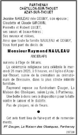 Décédé à Niort (79000, France) le dimanche 23 mars 2025 à l'âge de 84 ans