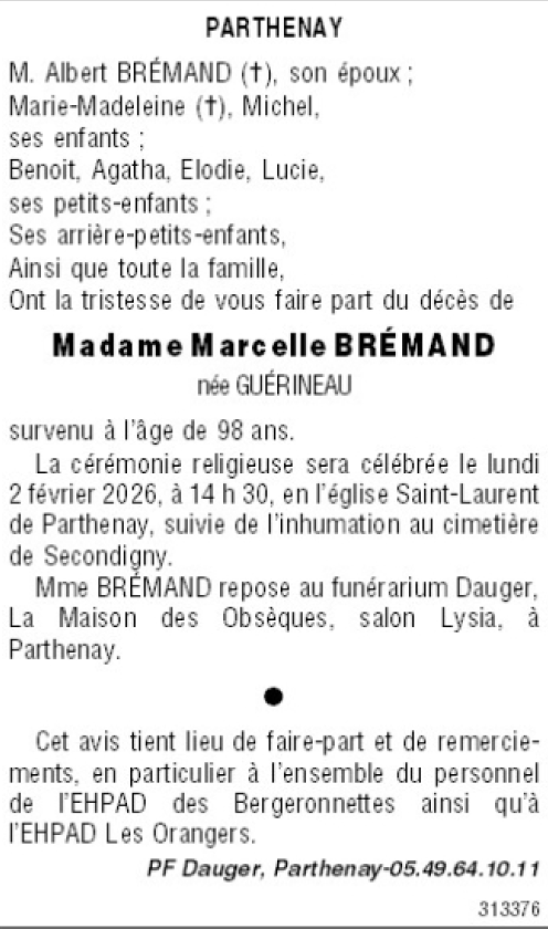 Madame Marcelle BREMAND née GUÉRINEAU
