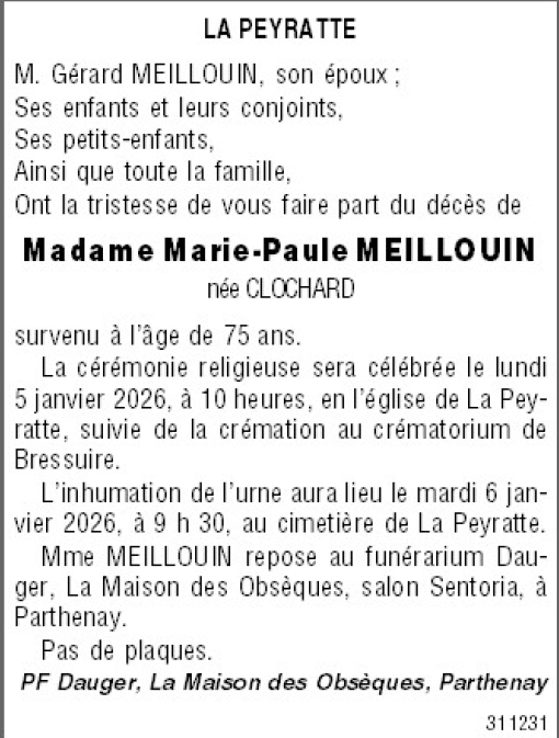 Madame Marie-Paule MEILLOUIN née CLOCHARD