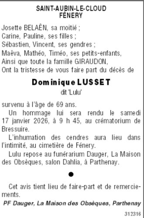 Décédé à Niort (79000, France) le mercredi 14 janvier 2026 à l'âge de 69 ans