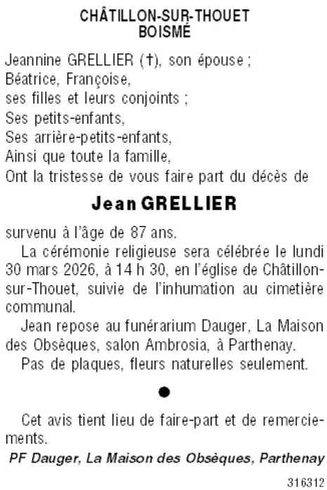 Veuf de Madame Jeannine GRELLIER