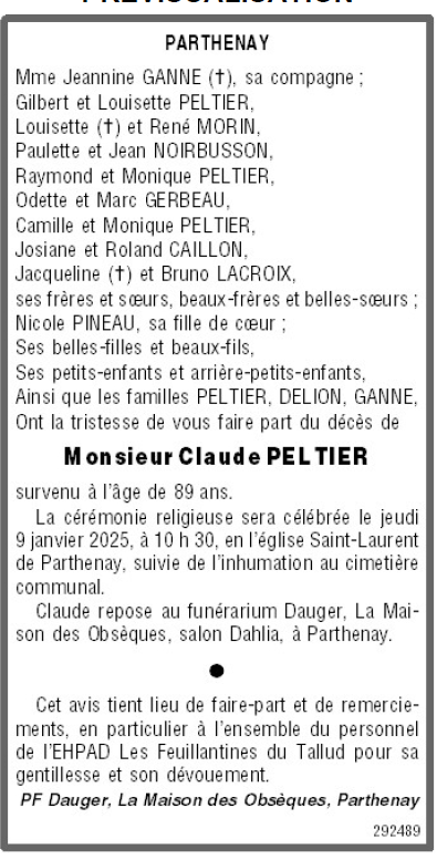 Décédé à Le Tallud (79200, France) le lundi 6 janvier 2025 à l'âge de 89 ans