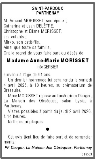 Madame Anne-Marie MORISSET née GERBIER