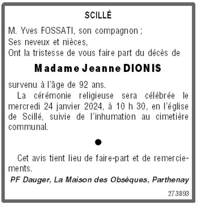 Madame Jeanne DIONIS