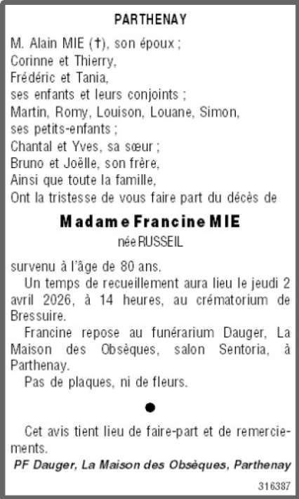 Madame Francine MIE née RUSSEIL