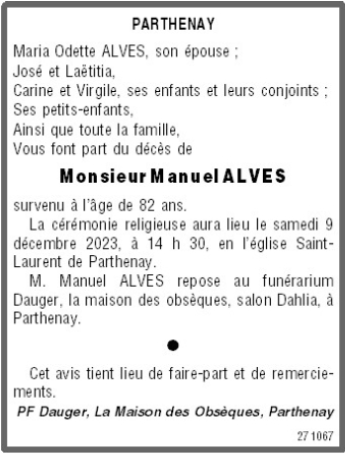 Décédé à Poitiers (86000, France) le jeudi 7 décembre 2023 à l'âge de 82 ans