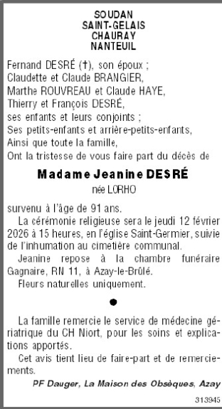 Madame Jeanine DESRÉ née LORHO