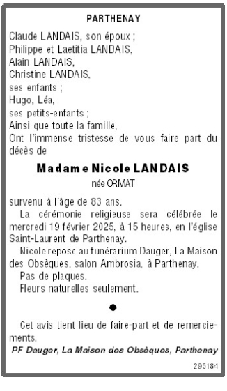Madame Nicole LANDAIS née ORMAT