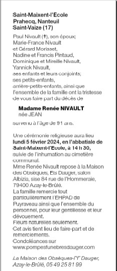 Madame Renée Nivault née JEAN