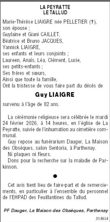 Décédé à Faye-l'Abbesse (79350, France) le samedi 21 février 2026 à l'âge de 82 ans
