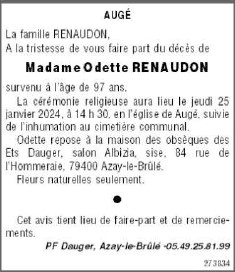 Veuve de Monsieur Paul RENAUDON