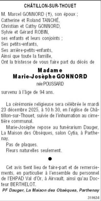 Madame Marie-Josèphe GONNORD née POUSSARD