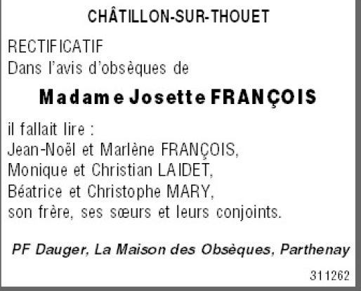 Madame Josette FRANÇOIS