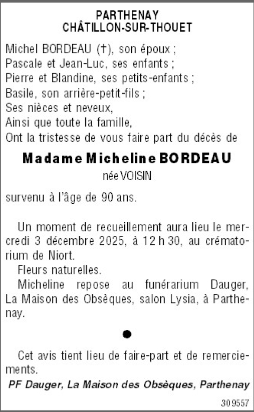 Décédée à Faye-l'Abbesse (79350, France) le jeudi 27 novembre 2025 à l'âge de 90 ans