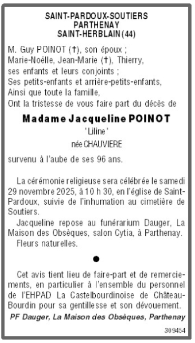 Madame Jacqueline POINOT née CHAUVIÈRE