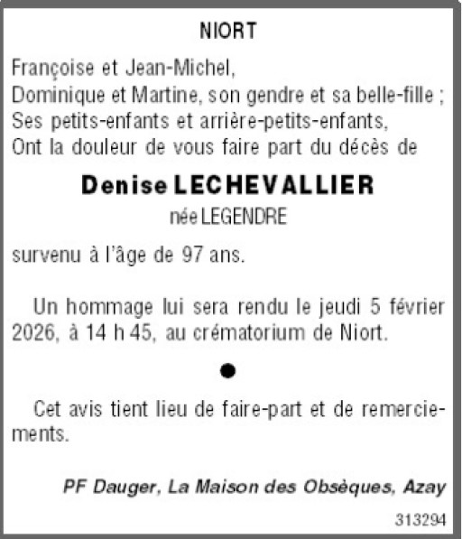 Madame Denise LECHEVALLIER née LEGENDRE